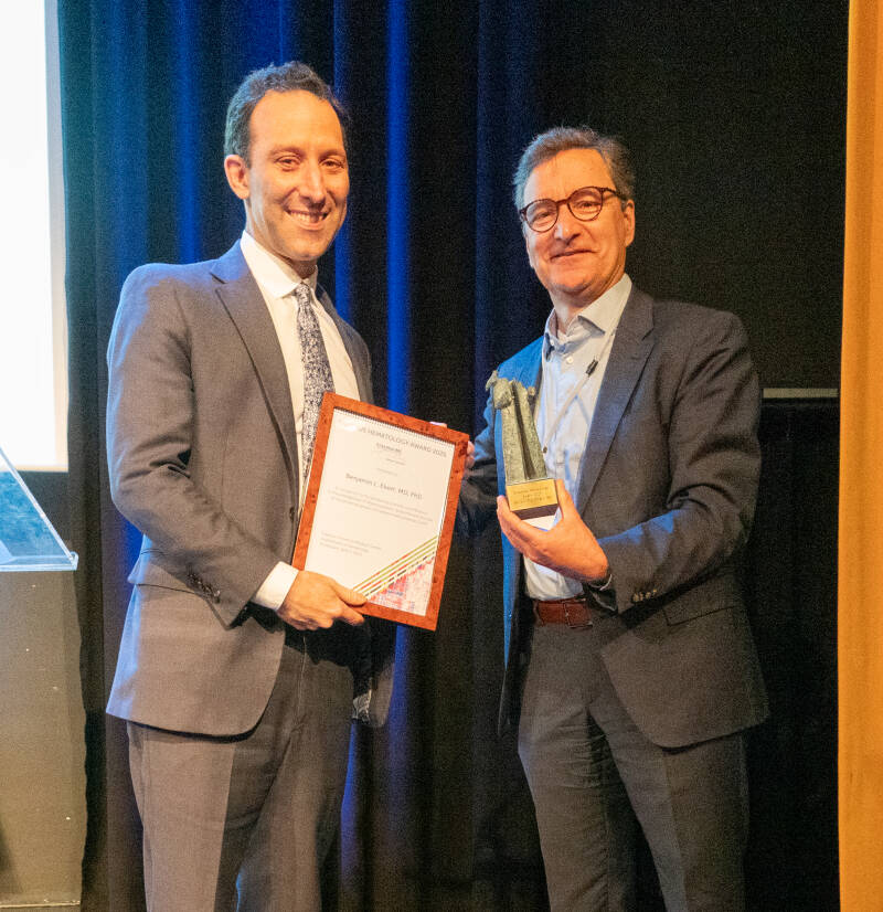 Dr Ebert is handed the Hematology Award by Dr Leebeek, Head of the Department of Hematology
